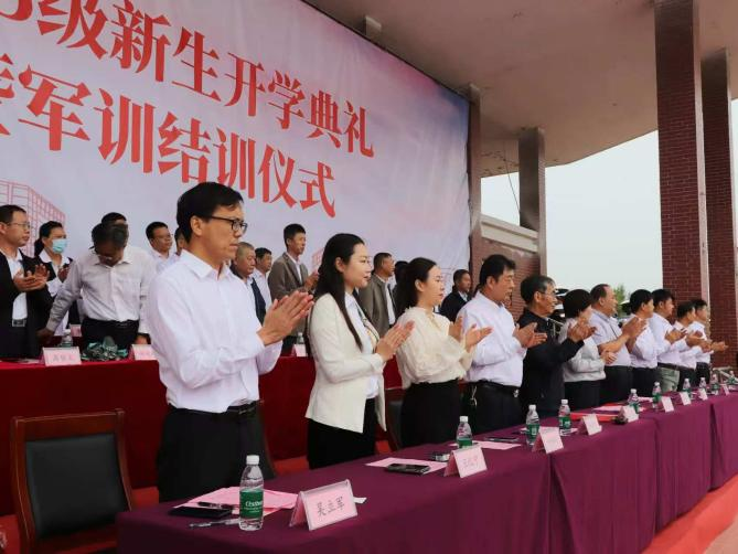 青春击楫乘风去,奋楫扬帆正当时。9月19日上午10点,我校于田径场举行2025级新生开学典礼暨军训结训仪式。7050名新生经历14天的军事训练,以飒爽英姿、昂扬风貌,迎来了大学生活的新征程。我校董事长薛行远,执行董事长薛君南,校长章梓茂,党委书记庞更新,副校长、财务总监余裕玲,副校长赵金楼,副校长王忆宁,党委副书记、副校长邵晓康出席典礼。渤海新区黄骅市有关领导,融河(黄骅)科教有限公司总裁张在兴,各学院及相关部处负责人、教师代表、2025级全体辅导员、承训教官共同见证这一重要时刻,典礼由党委副书记吴立军主持。
