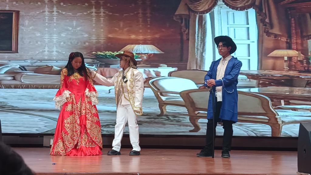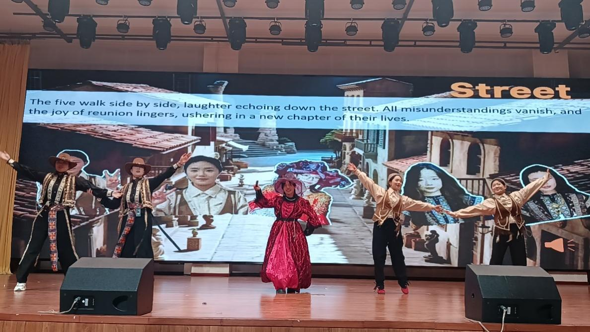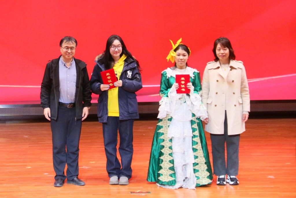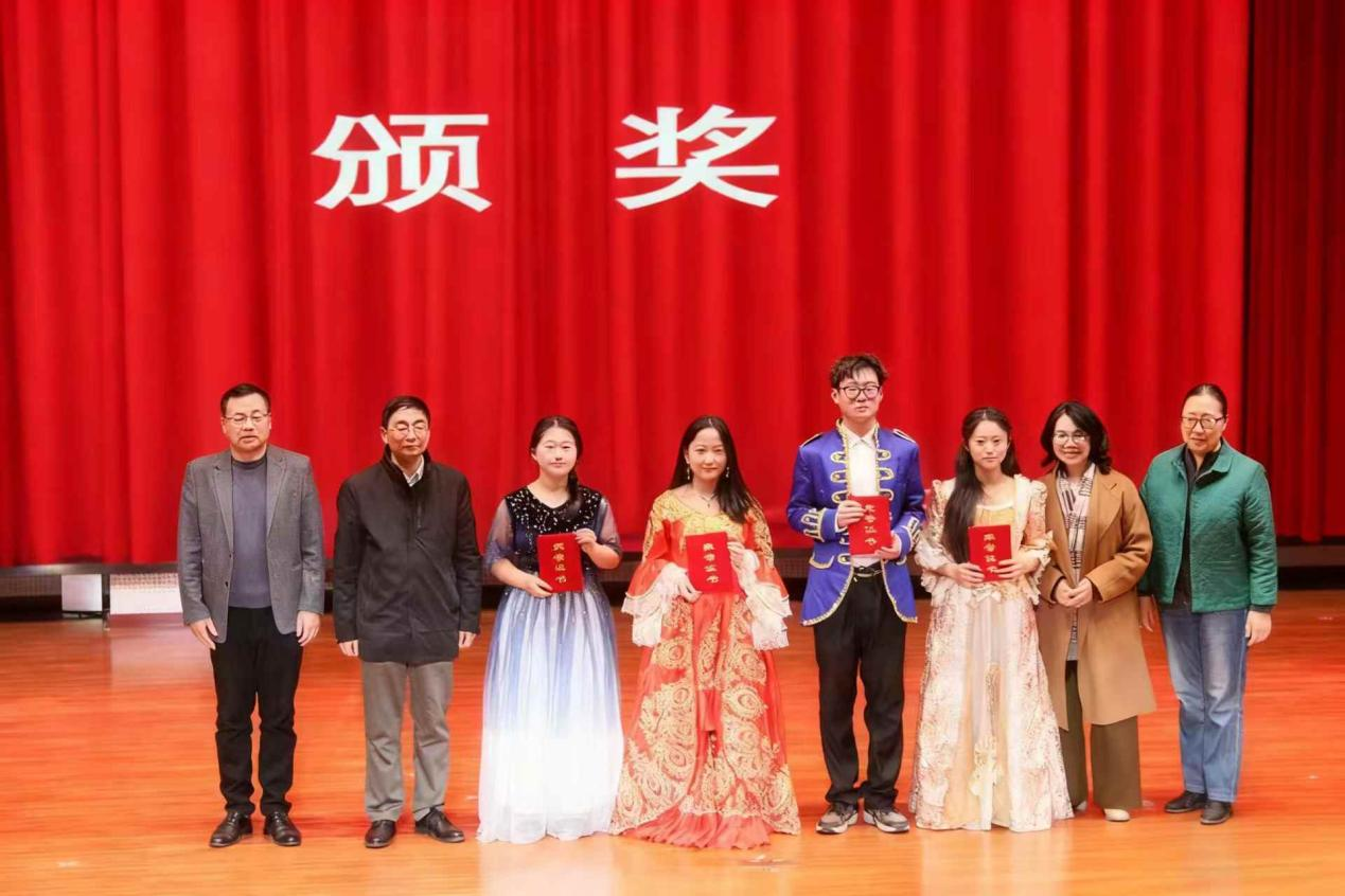 莎士比亚戏剧节”中脱颖而出的三支优秀英语专业剧组参演。由外国语学院副院长张丽教授、英语专业教研室主任陆朝霞教授带队,刘晨雨老师指导,刘同心、云楚然、李志晶、张伊静、王新媛同学表演的《错误的喜剧》荣获一等奖;王少杰老师指导,史慧莹、杨茜楠、厉弋茜、高梦美、路佳欣同学表演的《威尼斯商人》荣获二等奖;褚博文老师指导,韦雨萌、乔义谦、席越盈、常佳瑞同学表演的《驯悍记》荣获三等奖。同学们以流利的英文台词、精准的情感把握、富有张力的舞台表现和默契的团队协作,生动诠释了莎翁经典,展现了扎实的语言功底与深厚的人文素养。
