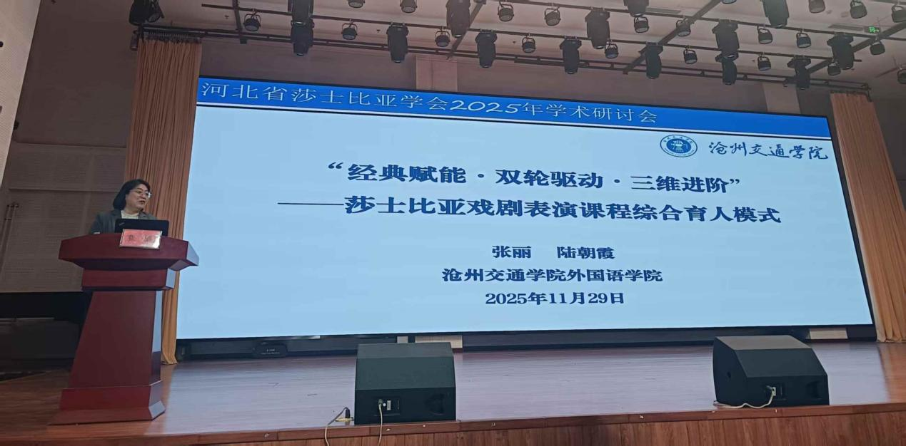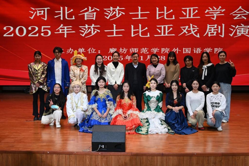 2025年11月28日至29日,河北省莎士比亚学会2025年学术研讨会在廊坊师范学院举行。我校外国语学院师生代表团受邀参加研讨会期间的莎士比亚戏剧展演环节,并凭借精湛的表演斩获一、二、三等奖,荣获与会专家的高度赞誉。