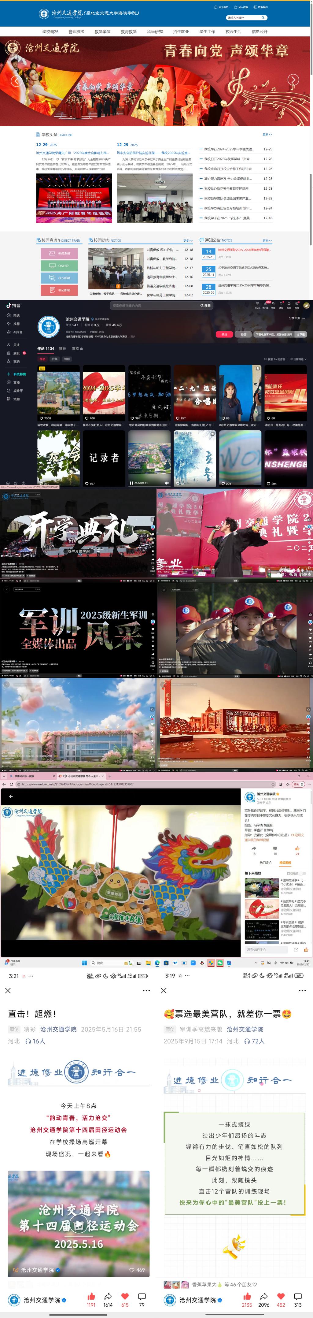 近年来,学校积极适应融媒体发展趋势,系统推进新媒体平台矩阵建设与内容生态培育。学校注重结合自身办学特色与育人实际,围绕校园文化、教学成果、师生风采等主题,持续打造具有传播力、引导力、影响力的原创内容;通过优化传播策略、加强互动设计、提升视觉呈现,逐步构建起定位清晰、渠道协同、反馈高效的新媒体运营体系。