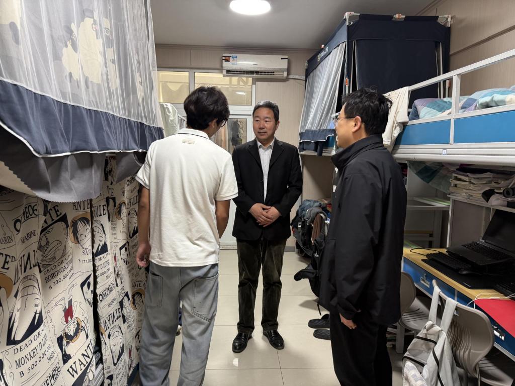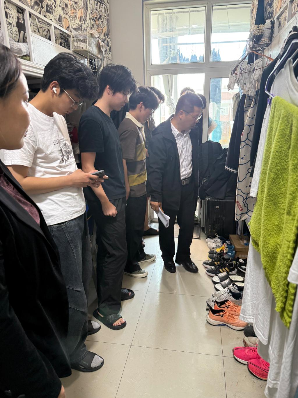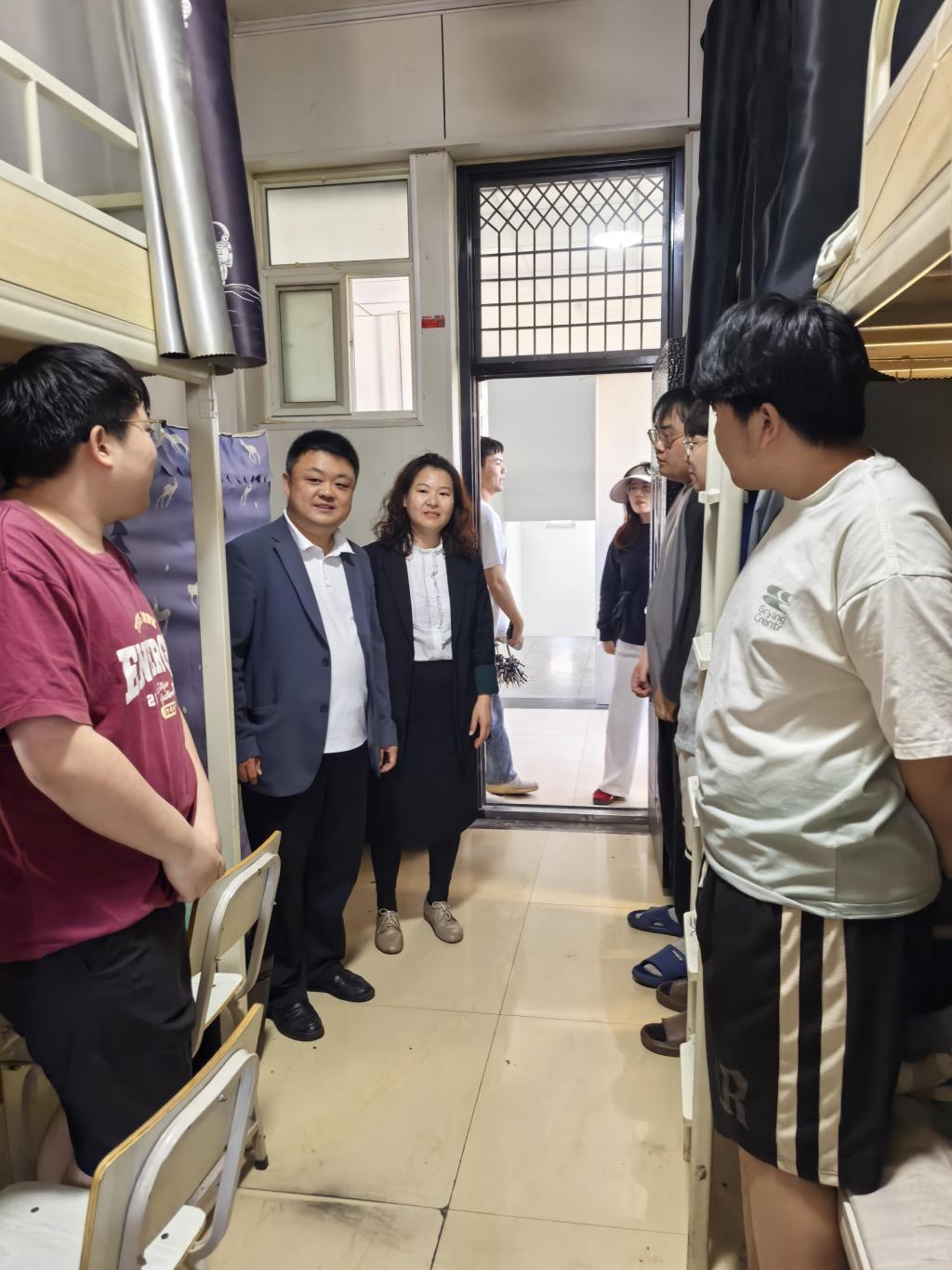 宿舍是学生生活学习的重要阵地,也是校园文明建设的前沿窗口。良好的宿舍环境不仅关乎学生的身心健康,更体现着学校的育人理念与管理水平。为深入落实立德树人根本任务,持续优化学生住宿条件,巩固前期宿舍卫生整改成果,引导学生养成文明自律、勤劳整洁的良好习惯,我校于4月30日全面开展学生宿舍环境卫生巩固提升专项行动。校党委副书记吴立军、学生处处长张海旺、校团委书记曹蒙春、学生处副处长孙经纬及各学院党政副院长参加本次行动。