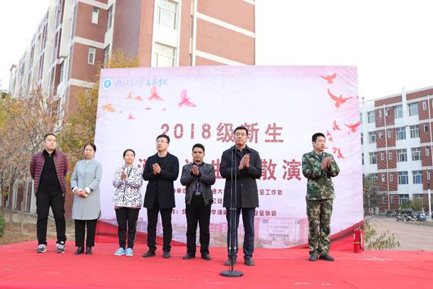 11月7日下午,为进一步增强我校师生火灾防范意识和逃生自救能力。我校于一期食堂广场南侧举行2018级新生消防逃生疏散演习活动。我校党委副书记魏炜,黄骅市消防大队参谋长李朝阳,学生处副处长翟砚辉,后勤服务中心副主任孙丽华出席本次活动,相关学院副院长,各院团委书记、18级新生辅导员和18级全体新生参加了此次疏散演习。此次活动由安全工作处处长张海旺主持。