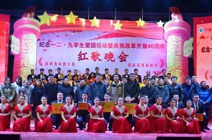 晚7时,“改革春风四十载,昂首迈进新时代”纪念“一二·九”学生爱国运动83周年暨庆祝改革开放四十周年红歌比赛于天佑会堂举行。我校党委副书记魏炜出席此次活动。相关职能处室负责人,各院系团委书记及辅导员参加了本次活动。