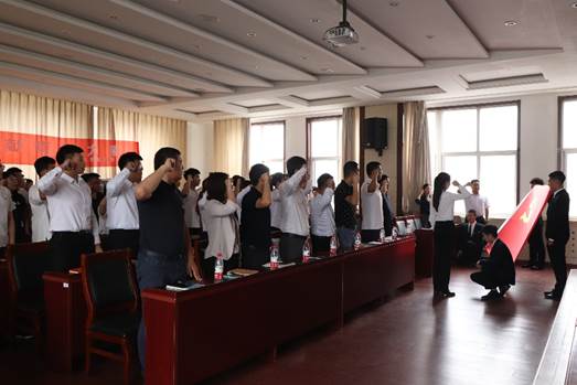 党课结束后,与会所有党员面向党旗,共同重温入党誓词。铿锵有力的誓词,使现场的每一位党员再次接受了心灵的洗礼,产生了强烈共鸣,也再一次加强了全体党员的党性修养。