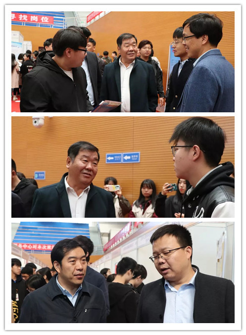 我校领导对本次招聘会给予高度重视和支持,校长王化深,党委书记魏旺强、学校办公室主任吴立军、招生就业处处长邵晓康、学生处副处长翟砚辉、招生处副处长张建新,各二级学院(系)相关负责人亲临招聘会现场,了解双选会现场情况。