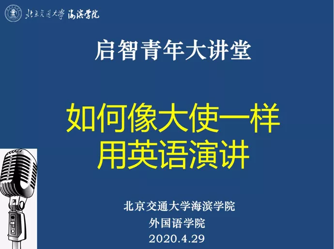 4月29日下午四点,我校外国语学院有幸邀请到外交部外语专家、中国翻译协会副会长陈明明大使,在云端为学院师生带来2020年度启智青年大讲堂第一讲“如何像大使一样用英语演讲”。本次讲座由我校外国语学院主办,副院长张丽主持,学院全体师生参与讲座。“启智青年大讲堂”是外国语学院在2020年全力打造的特色品牌活动。