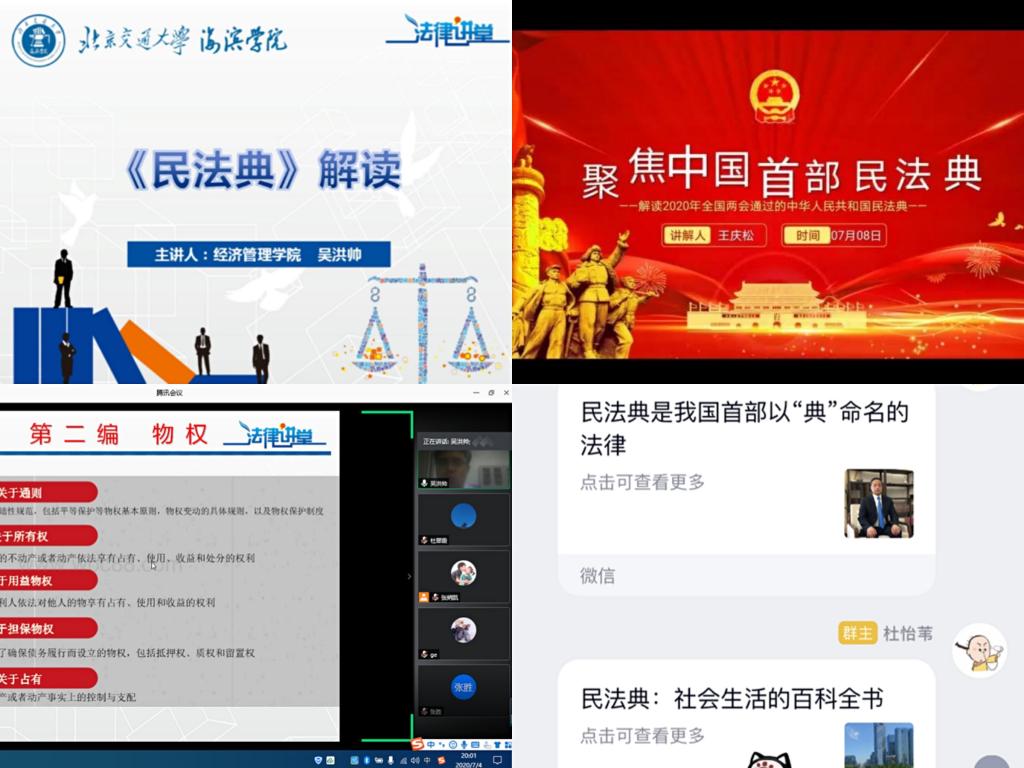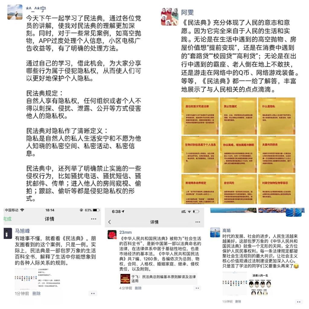 民有所呼,法有所应。我校师生深入学习领会《中华人民共和国民法典》的相关内容,各单位、各班级内部互相讨论学习,大家学有所得、收获满满。