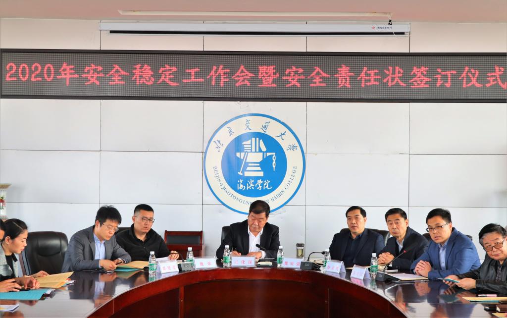 为维护我校安全稳定工作,细化任务分工,我校在行政楼B512会议室举行了2020年安全稳定工作会暨安全责任状签订仪式。我校校长王化深,党委书记魏旺强,党委副书记魏炜,副校长赵金楼,校长助理邵晓康、吴立军出席本次会议,各二级单位负责人参会。本次会议由校长助理吴立军主持。