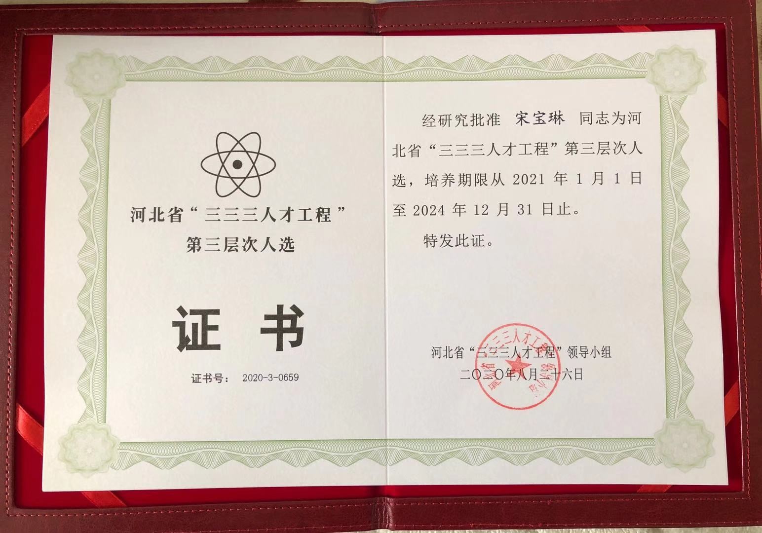根据河北省人力资源和社会保障厅的有关规定,经河北省“三三三人才工程”领导小组评审,我校教师宋宝琳被评为2020年度河北省“三三三人才工程”第三层次人选。