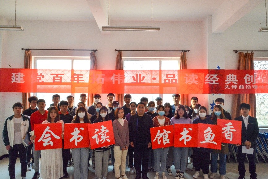 为深入学习贯彻习近平新时代中国特色社会主义思想,庆祝中国共产党成立100周年,创新党史学习活动载体,我校开展“建党百年拓伟业·品读经典创未来”为主题的学习读书会。本次读书会由学生处副处长翟砚辉主讲,我校学生代表参加本次活动。
