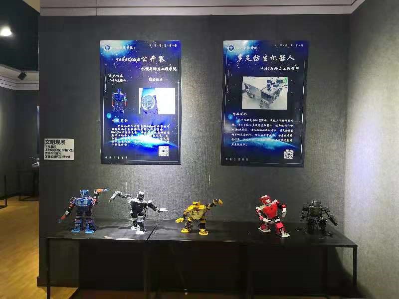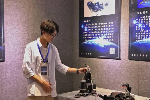 本次科技展包括我校学生书法、篆刻、焊接、美术等不同形式的创作,陈列了人形机器人、焊接模型、3D打印、别墅模型、木桥、计时计数仪、智能车等多件实物模型,工作人员进行了精彩演示和仿真模拟,一系列引人入胜的互动活动吸引了大批来往师生驻足观看体验。