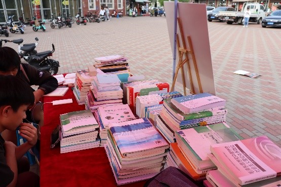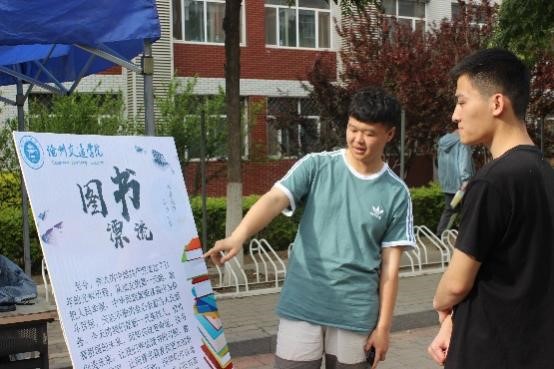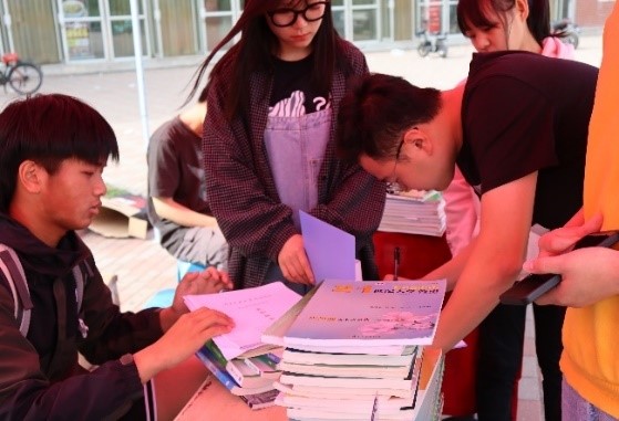 “爱心书屋”活动包括图书漂流、书迷空间、绿色回收三个环节。我校在一期和二期食堂门前同时进行图书漂流与绿色回收环节,将“爱心书屋”现有的各类书籍进行整理分类并展示,供广大师生借阅或兑换。活动现场工作人员向同学们积极宣传本次活动的目的,呼吁更多的同学参与进来,对同学们捐献书籍的情况做好详细记录,并赠予精美的小礼品。