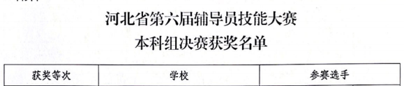 为深入贯彻落实全国、全省高校思想政治工作会议精神和《普通高等学校辅导员队伍建设规定》(教育部43号令)精神,促进各高校辅导员间相互交流学习,进一步提高我校辅导员的职业技能和服务水平,我校经济管理学院田雨潇、轨道交通学院王晓骏、艺术学院刘展辰积极参与河北省第六届高校辅导员职业技能大赛,并荣获团体三等奖。