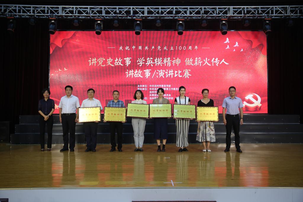 6月18日,由沧州市委宣传部、市委教育工委、市教育局、团市委等单位共同组织的庆祝中国共产党成立100周年全市大中专院校“讲党史故事、学英模精神、做薪火传人”讲故事演讲比赛在沧州医学高等专科学校学术报告厅举行,我校学生左贵源获一等奖、吕超英获二等奖,我校获优秀组织奖。