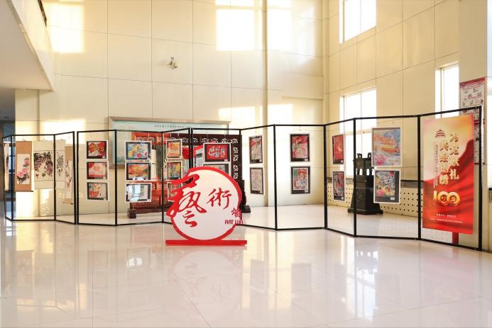 为庆祝中国共产党成立100周年,深入贯彻习近平总书记在党史学习教育动员大会上的重要讲话,激励引导广大青年学生学习百年党史,回顾辉煌历程,传承党的崇高精神,弘扬党的光荣传统。近日,我校艺术学院在行政楼大厅举办以“为党献礼,共绘锦绣”为主题的艺术展。