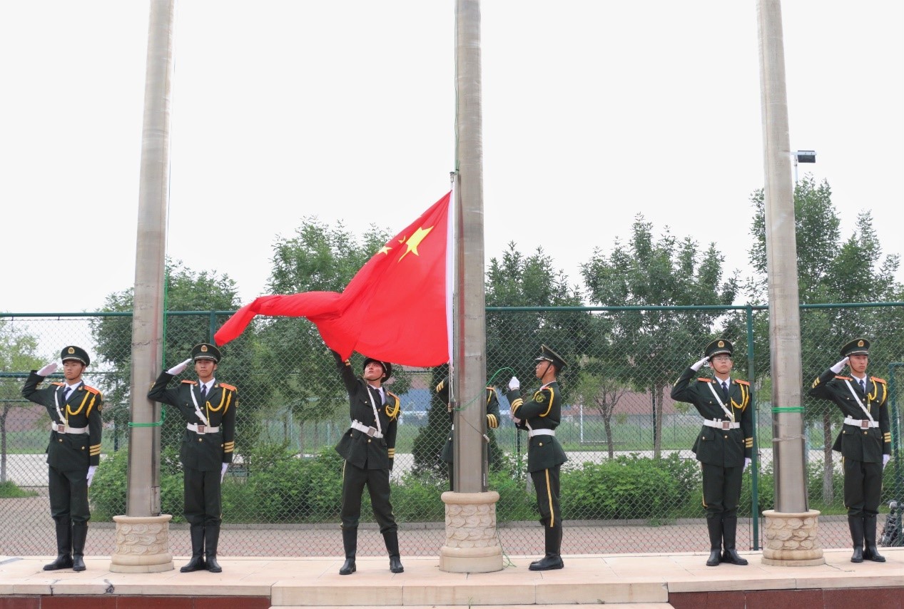 全体师生起立,向国旗行注目礼,伴随着慷慨激昂、催人奋进的《义勇军进行曲》,开训典礼正式开始。