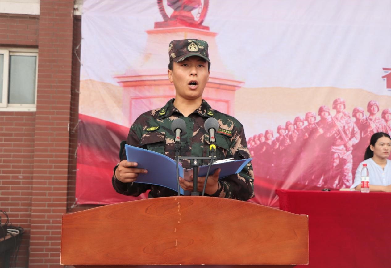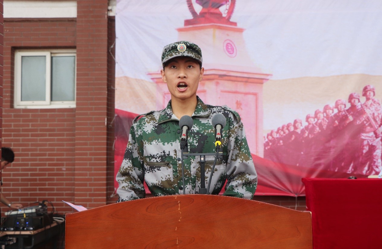 军训团教官代表金融工程1801班施棠发言,施棠同学表示,在接下来的军训过程中,教官们有决心、有信心训出好成绩,展出好风采!教官将从自身做起,以良好的形象、过硬的军事素养为同学们的军事技能训练做好示范,让同学们通过军训有所启迪,提高政治思想觉悟,增强国防观念,培养吃苦耐劳的精神,增强集体主义精神和纪律意识。随后施棠代表2020级全体军训教官宣誓:服从安排、听从指挥、履行职责、做好榜样、磨炼意志、不怕困难,争做优秀标杆,坚决完成2020级军训任务!