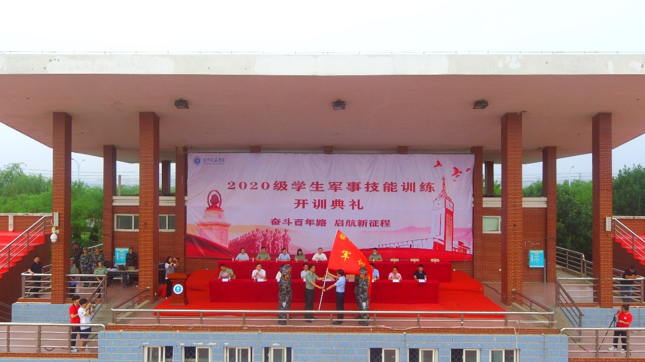 校长助理吴立军为2020级军训团授旗,并宣读沧州交通学院2020级学生军训团组成名单。