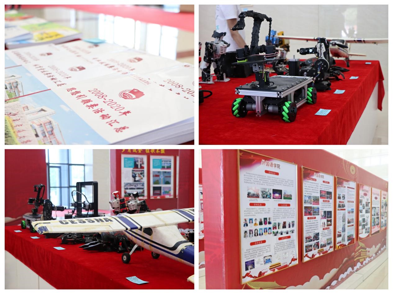 此次成果展分为学校整体展示和学院展示两部分。学校整体展示分设“校园文化,环境育人”、“岁月流金,弦歌不辍”、“党建引领,凝心铸魂”、“立德树人,共塑成长”、“科研引领,稳步前行”、“锐意进取,桃李芬芳”、“砥砺奋进,硕果累累”七大版块,以图片展和实物展相结合的方式,系统回顾了我校建校以来的办学成果,内容丰富且翔实,展板布置新颖、别致。学院展示部分各学院从学院介绍、党史学习教育、学科建设、科研情况、学生活动等方面总结了各自的教学成果,突出学院建设的特色、亮点及优势。