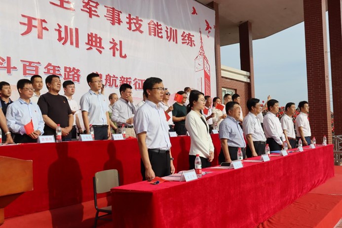 军训学员们手持红旗组成“1921-2021”、“党徽”、“中国”字样的方阵,并齐唱《唱支山歌给党听》《没有共产党就没有新中国》等红色经典歌曲,共抒爱国爱党之情,在百米红卷上为我们的党和祖国送上美好的祝福。