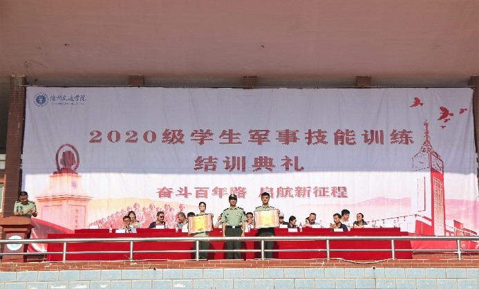 校长助理吴立军宣读沧州交通学院2020级学生军训表彰决定。