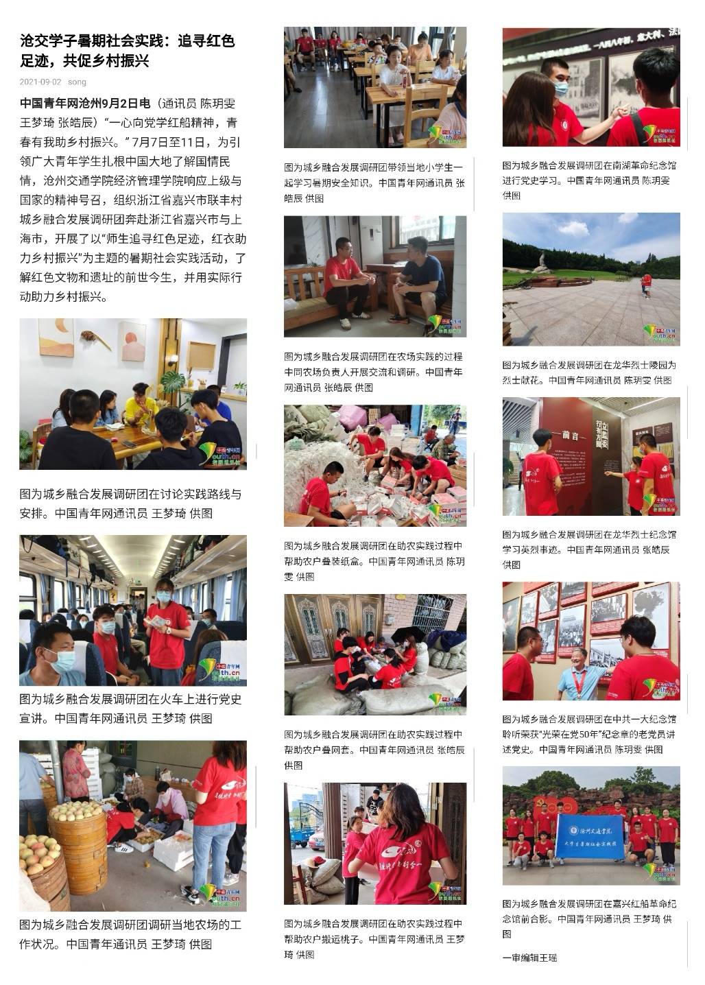 9月2日中国青年网报道了我校经济管理学院开展的以“师生追寻红色足迹,红衣助力乡村振兴”为主题的暑期社会实践活动。