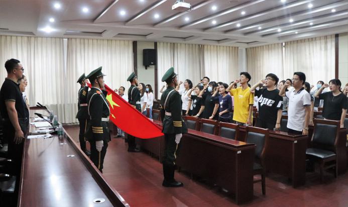 国旗队护送国旗入场,土木建筑工程学院副院长时国松带领新入职教师庄严宣誓。