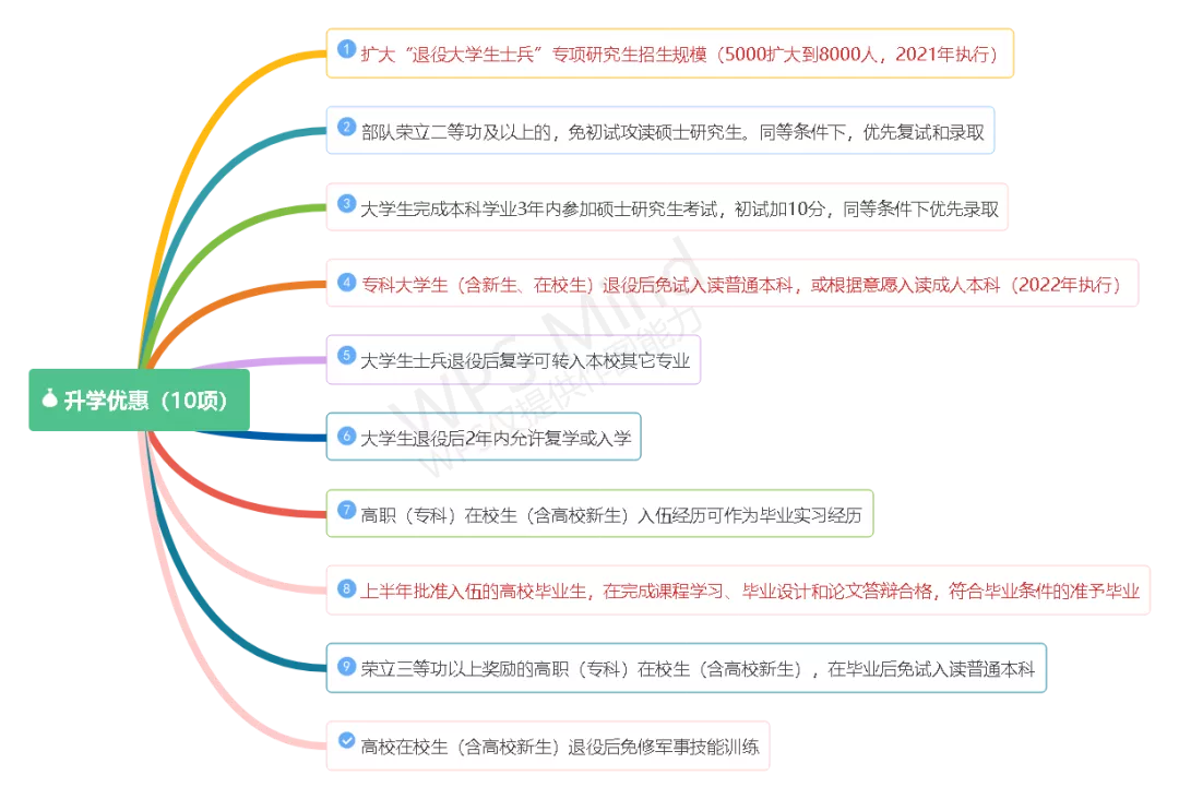 (1)退役后专科升本科:专科毕业生应征入伍,退役后可免试入读普通本科。