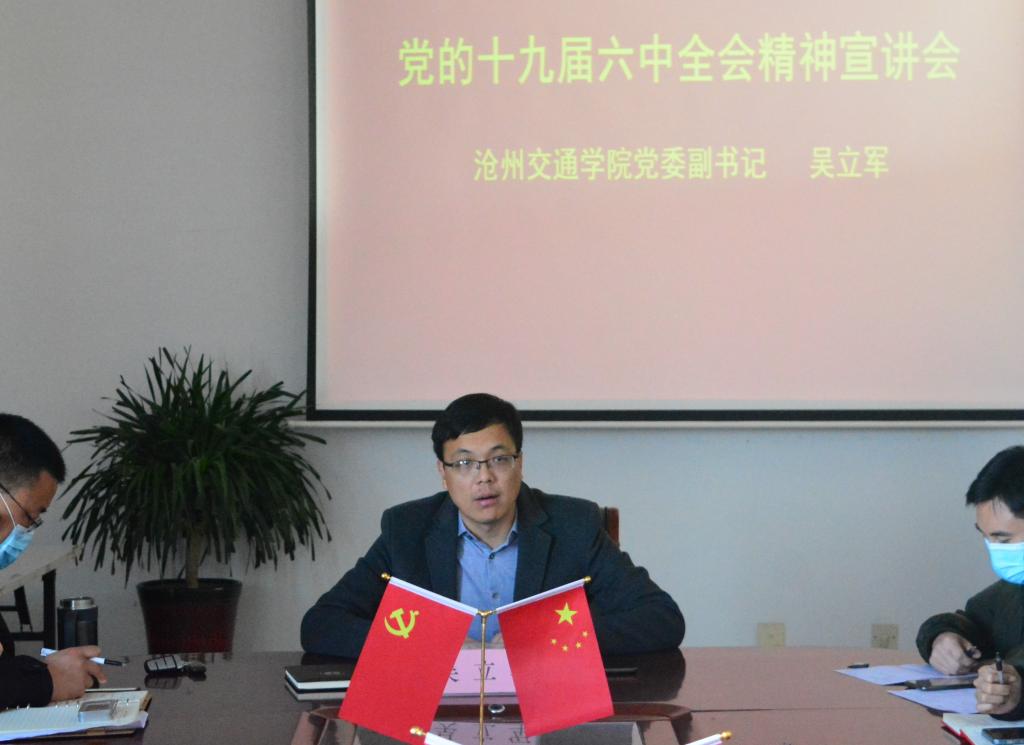 为认真学习宣传贯彻党的十九届六中全会精神,切实把全校师生的思想和行动统一到全会精神上来,12月13日上午9点,我校在大学生活动中心206组织开展党的十九届六中全会精神宣讲会。党委副书记吴立军担任主讲人。