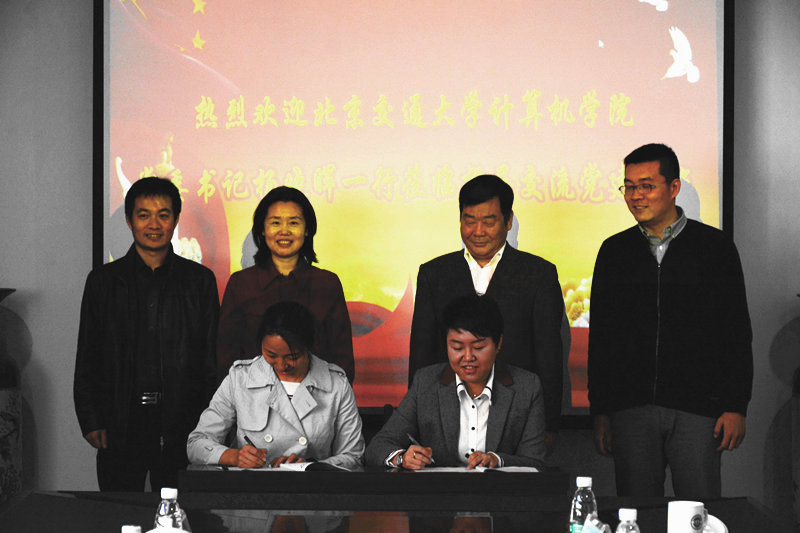 最后,双方签订了《北京交通大学计算机学院机关党支部 北京交通大学海滨学院学生党总支共建协议》,以期通过建立互帮、互学、互助的共建机制,努力形成“资源共享、优势互补、知行并举、协调发展”的基层党建工作新格局。