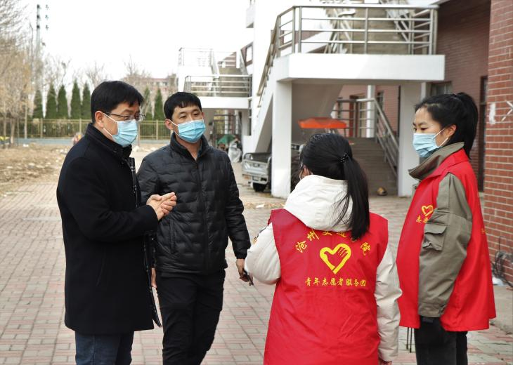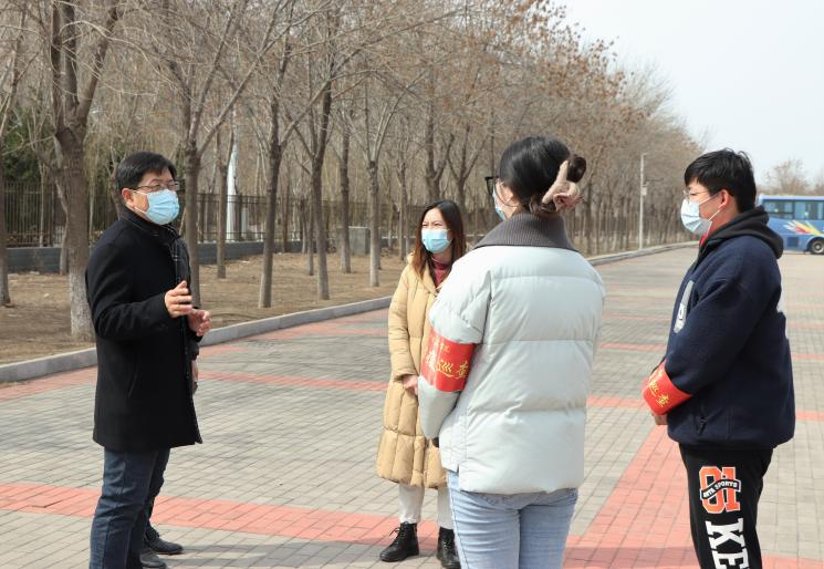 3月20日上午,我校党委书记庞更新巡视慰问了参与学校疫情防控巡视督查的党员教师志愿者。