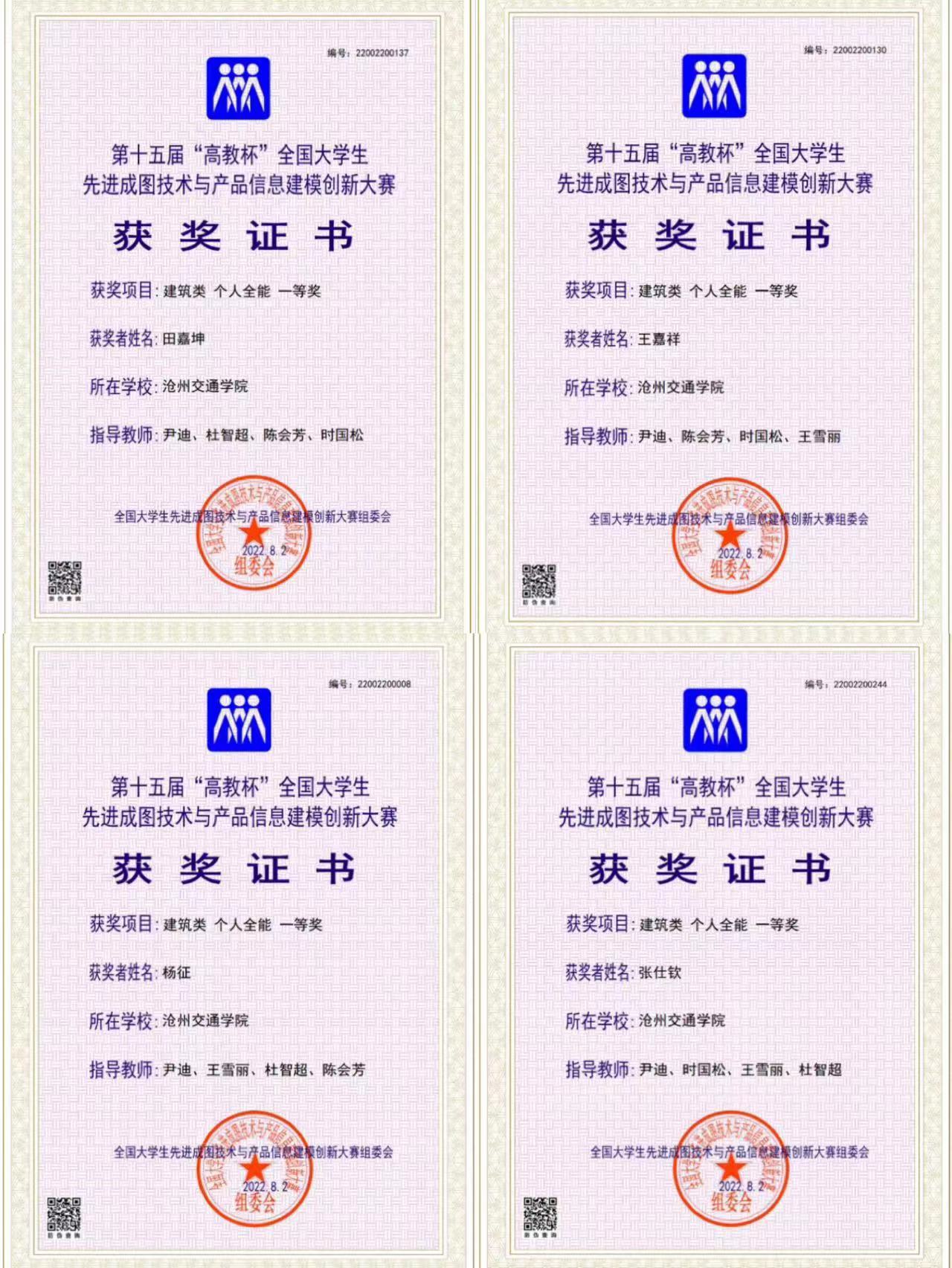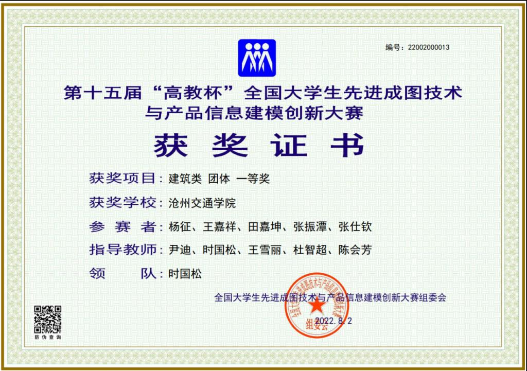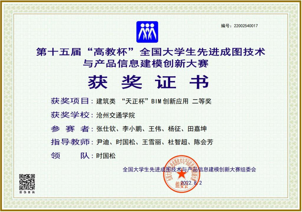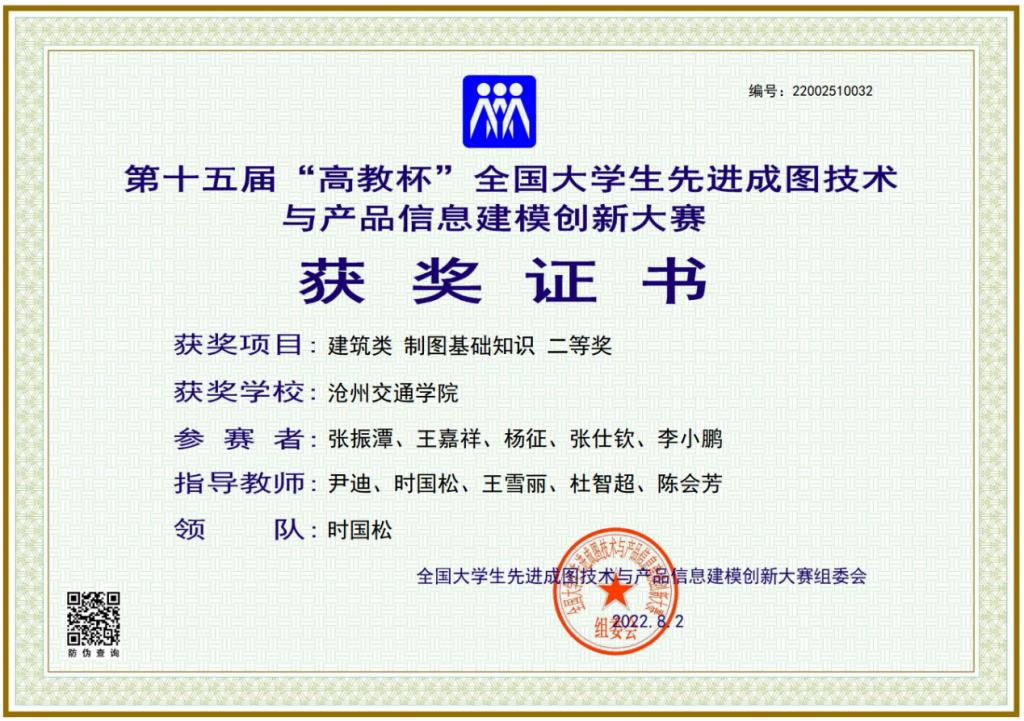 学校领导高度重视本次比赛,大力支持学院开展各项竞赛工作。我校土木建筑工程学院师生克服困难,积极参赛。最终在尹迪老师、时国松老师、王雪丽老师的指导下,学院代表队不畏强手,稳定发挥,脱颖而出取得了斐然的成绩,在全省高校制图与构型领域充分展示了沧州交通学院教师精湛的教学水平、学生扎实的专业技能和良好的综合素养。