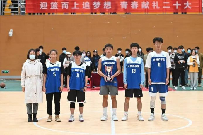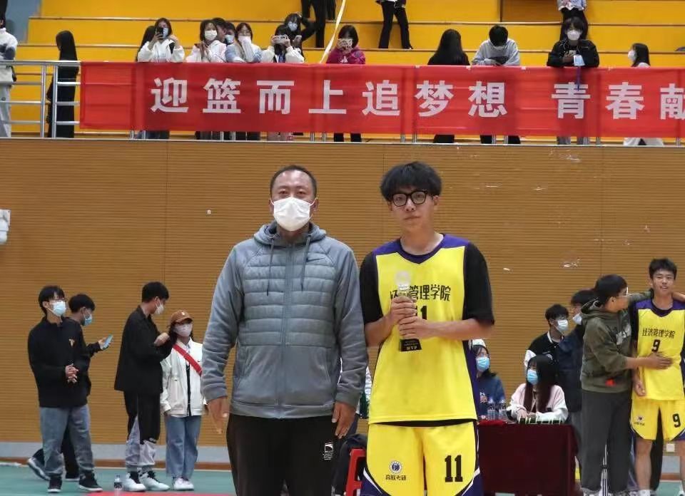 最终,经济管理学院以50:36的成绩获得第十四届新生杯篮球赛冠军。颁奖嘉宾们为获奖学院代表队员进行颁奖。