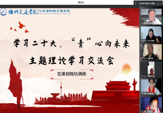 为深入学习党的二十大精神本质,领悟党的二十大思想内涵,提高入党积极分子思想政治觉悟,增强其学习的自觉性和坚定性,培养更多合格的党员,化学与制药工程学院于12月8日21:00在线上开展第二十五期党课初级班“学习党的二十大,‘青’心向未来”主题理论学习交流会。