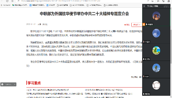 2022年12月15日,经济管理学院第一党支部以腾讯会议的形式组织学习“党的二十大报告解读|科教兴国 人才强国”,教育、科技、人才是全面建设社会主义现代化国家的基础性、战略性支撑,通过进一步学习、理解党的二十大报告的内容,深刻理解教育任务之重。构建新发展格局,实现高质量发展,离不开高水平科技自立自强,离不开国家战略人才力量的有力支撑,办好人民满意的教育,要以教育优先发展为战略,加快建设高质量教育体系。作为高校教师,要深刻理解新时代新征程中教师的使命任务,提升教学能力,坚守为党育人、为国育才的初心使命,为加快建设教育强国贡献力量。