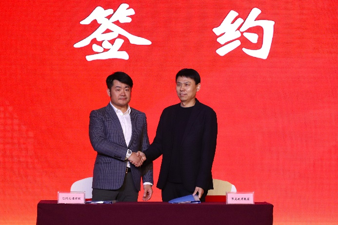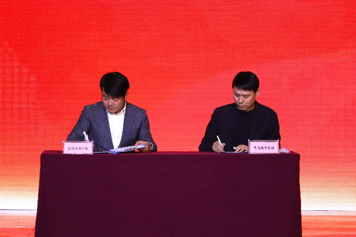 我校执行董事长薛君南与莱克国际教育集团董事长刘文宪上台签约。