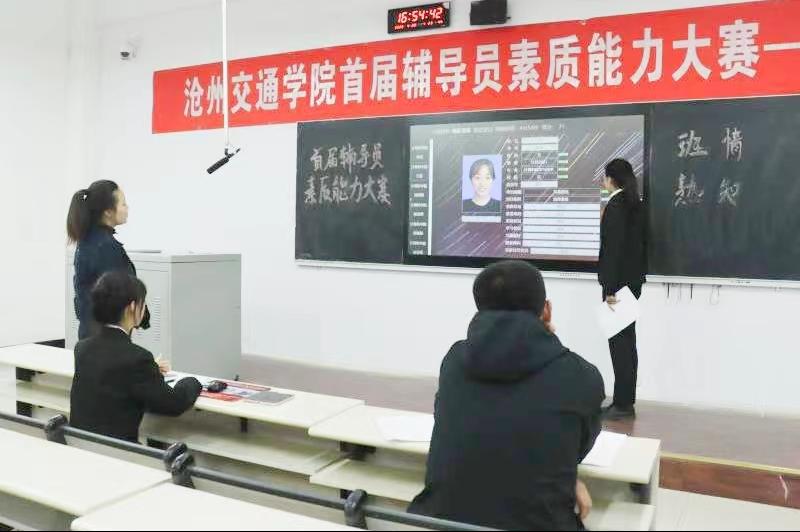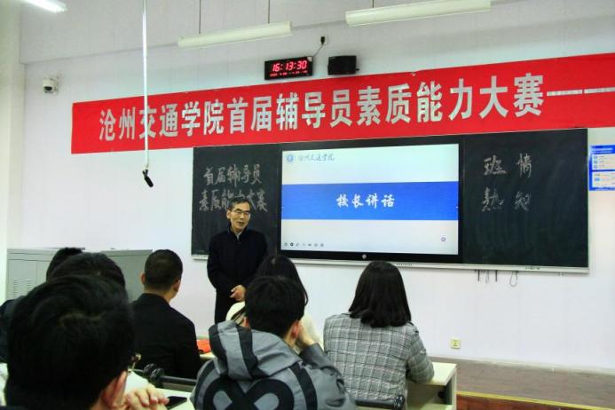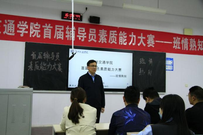 辅导员是学生成长成才的重要影响源,在学生健康发展过程中起着导师的作用,为加强我校辅导员队伍建设,全面提高辅导员综合素质和管理水平,增强教育管理服务实效,我校于2023年4月20日16:00举行沧州交通学院首届辅导员素质能力大赛——班情熟知比赛,各学院团委书记、专兼职辅导员共计54人参赛,校长章梓茂出席并讲话,党委副书记吴立军、学生处处长王庆松、校团委书记曹蒙春、学生处副处长翟砚辉以及各学院党政副院长现场观摩了此次比赛。