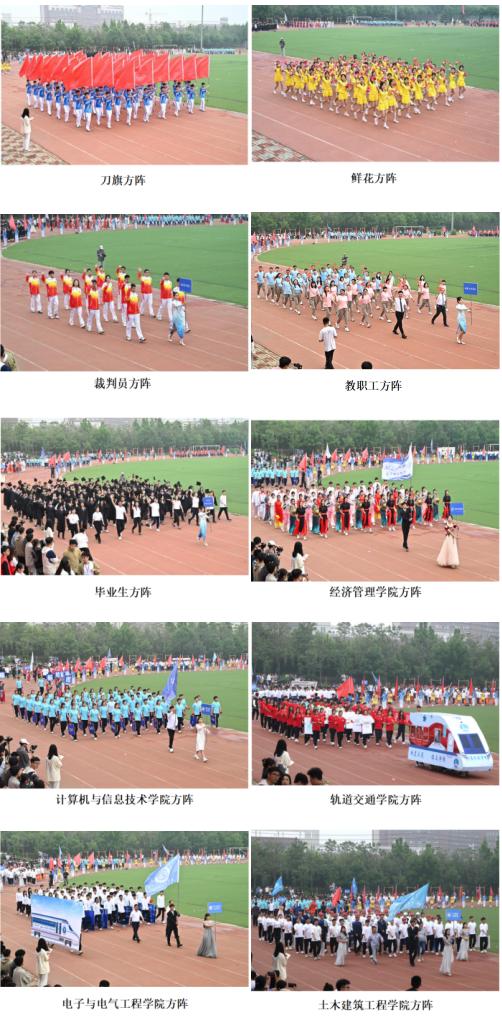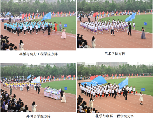彩旗飘飘,鼓乐声声。在五星红旗,校旗的引领下,刀旗方阵,鲜花方阵,裁判员方阵,教职工方阵,毕业生方阵以及各学院方阵依次入场。他们以整齐的步伐,强健的体魄,良好的面貌,展示出必胜的勇气和力量。