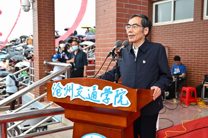 为贯彻党的二十大精神,推进新时代学校体育工作的蓬勃发展,增强师生身体素质,丰富校园文化,展现魅力沧交。5月27日,以“青春献礼二十大,强身健体筑未来”为主题的第十二届田径运动会开幕式于我校操场隆重举行。渤海新区黄骅市人民政府副市长张桂云,北京交通大学驻校办学督察任虹宇应邀出席本次运动会,校长章梓茂,常务副校长张长铎,财务总监兼总会计师余裕玲,副校长赵金楼,副校长王忆宁,副校长、党委副书记邵晓康,各二级单位负责人以及师生代表出席本次开幕式,党委副书记吴立军主持此次开幕式。