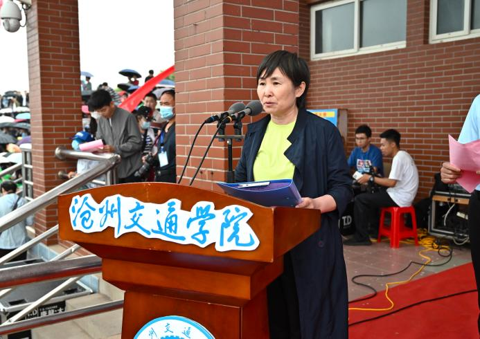 渤海新区黄骅市人民政府副市长张桂云代表渤海新区党工委、管委会、黄骅市委市政府对我校第十二届田径运动会隆重开幕表示了热烈的祝贺,并向我校全体师生致以亲切的问候和关怀。她指出体育是提高人民健康水平的重要途径,是促进经济社会发展的重要动力。田径运动会是师生们体验比赛魅力、诠释体育精神、展现青春风采的重要舞台,呼吁全体运动员以本次运动会为新的起点,积极参加各类文体活动,强身健体,养成体育锻炼的良好习惯。在运动中磨练意志、健全人格、砥砺奋进,以昂扬的风貌献礼党的二十大,迎接祖国更美好的未来。