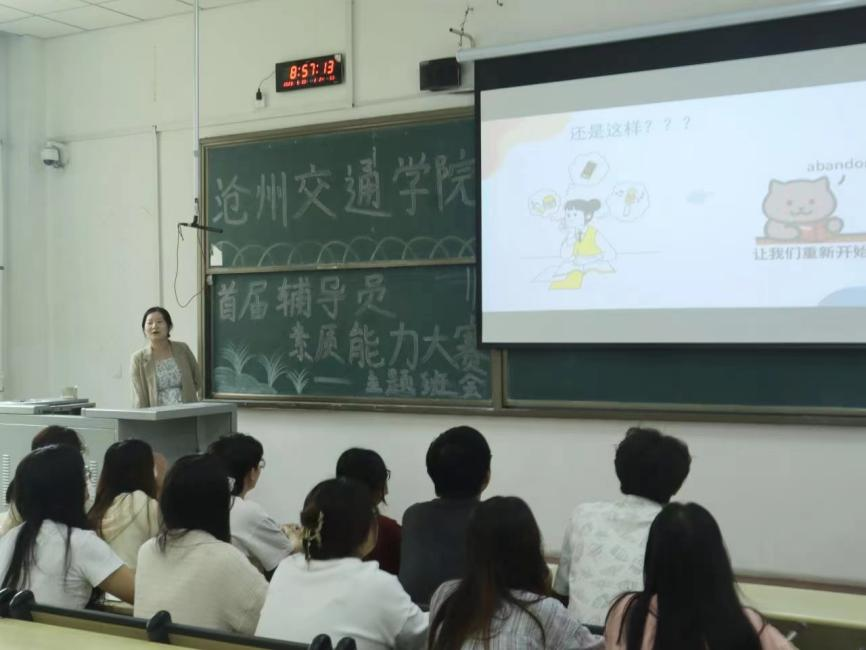 5月30日上午8:15,辅导员进行主题班会现场授课比赛。此环节限时10分钟,参赛辅导员围绕职业规划、大学生恋爱观、心理健康教育等学生工作中的热点、难点问题,巧妙构思、精心策划,通过启发式、交互式、体验式等多样形式开展主题班会,与现场学生进行有效互动,呈现了一堂堂主题鲜明、寓意深刻、精彩纷呈的主题班会。