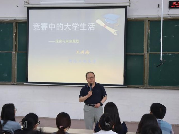 为强化“以赛促学、以赛促教”的教育模式,充分发挥学科竞赛在人才培养过程中的重要作用,推进学校人才培养建设,我校化学与制药工程学院于5月25日在知行楼A301邀请河北工业大学王洪海教授作“竞赛中的大学生活”专题讲座,化学工程与工艺、制药工程等专业的大一、大二、大三学生及竞赛指导教师参与讲座,化学与制药工程学院副院长孙丽主持活动。