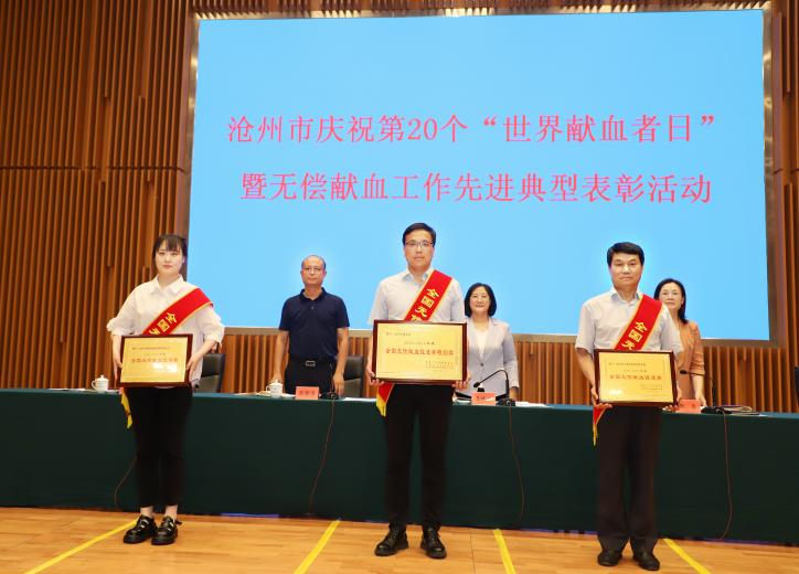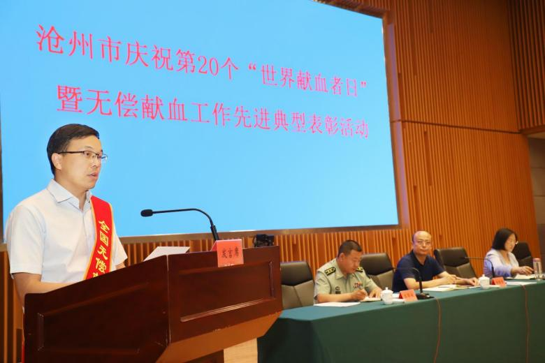 6月9日,在第 20 个“世界献血者日”到来之际,沧州市人民政府举办的第20 个“世界献血者日”暨无偿献血工作先进典型表彰活动中我校党委副书记接受表彰。