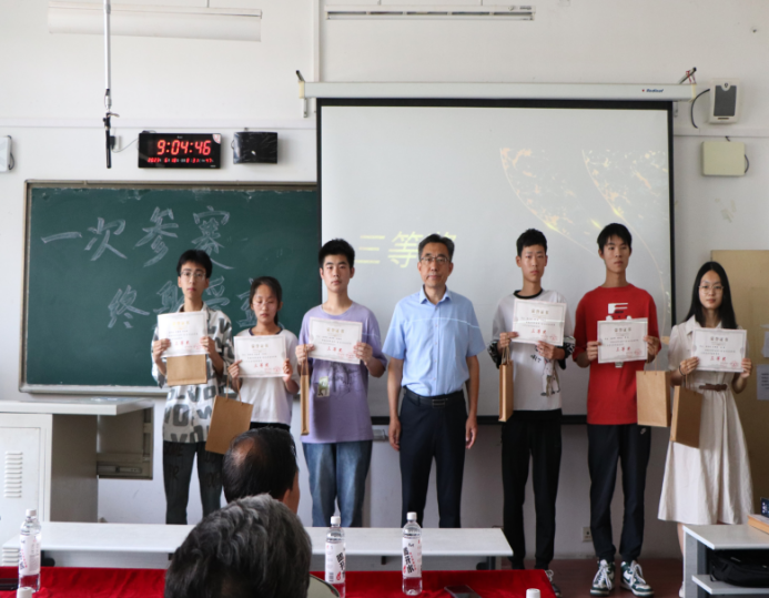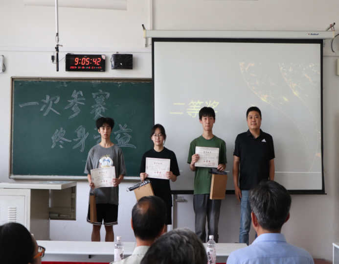副校长赵金楼为获得一等奖的队伍颁奖留念