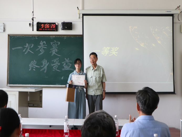 数学教研室主任罗跃生为成功参赛的队伍颁奖留念