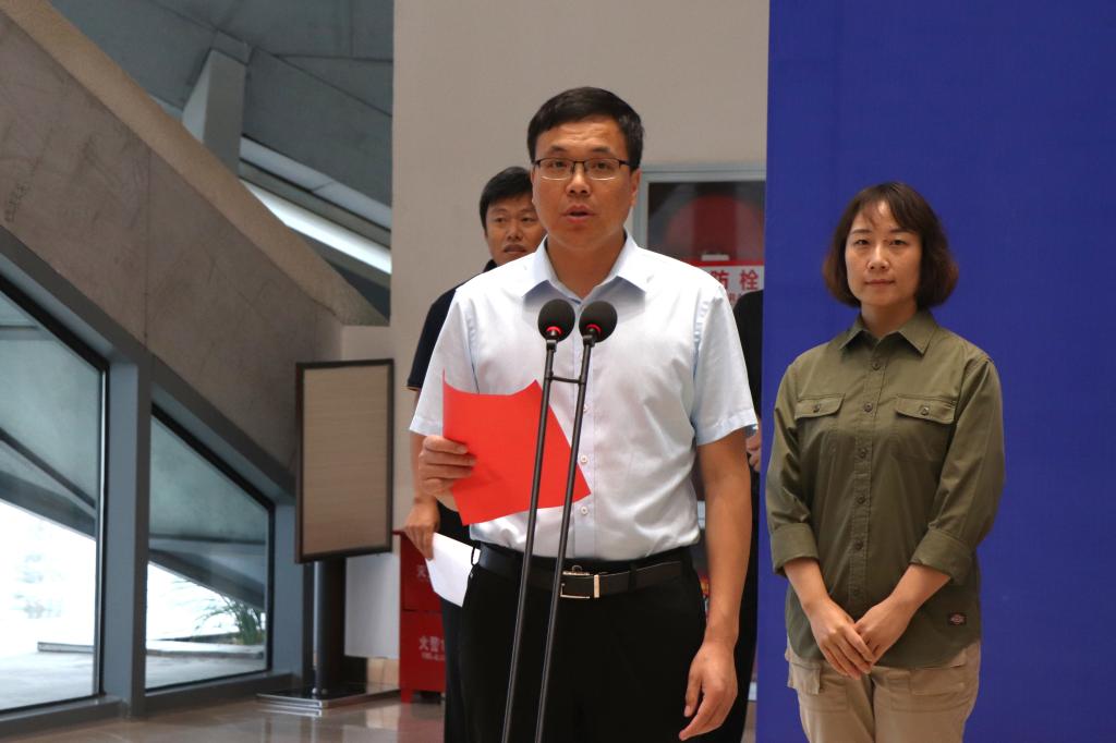 7月4日上午,我校与黄骅市文化馆社会实践基地揭牌仪式于黄骅市四馆一中心的黄骅文化馆内隆重举行。渤海新区党工委委员、黄骅市委常委、宣传部长郑玉中,渤海新区黄骅市政府副市长张桂云,我校校长章梓茂,渤海新区黄骅市教育局局长何寿彪,党委副书记吴立军,共青团黄骅市委书记滕占涛,我校学生处处长王庆松,团委书记曹蒙春出席本次仪式,我校师生代表,黄骅市文化馆代表参会。本次仪式由渤海新区黄骅市文化广电和旅游局局长夏金海主持。