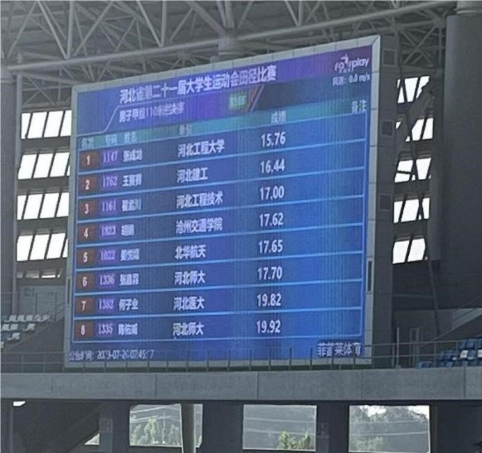 此次比赛,我校共8位学生参赛。在第二个比赛日,男子甲组5000米项目中计算机与信息技术学院软件2210班的张立坚同学以17分29秒的成绩打破我校该项目的最高纪录;男子甲组200米项目中经济管理学院金融2105的高烁、卢谦鸿先后打破我校该项目最高纪录,同时卢谦鸿同学以23秒72的成绩达到运动员国家技术等级的二级标准;男子甲组110米栏的项目中计算机与信息技术学院软件2004班的胡靖同学以17秒62的成绩获得第四名的荣誉。