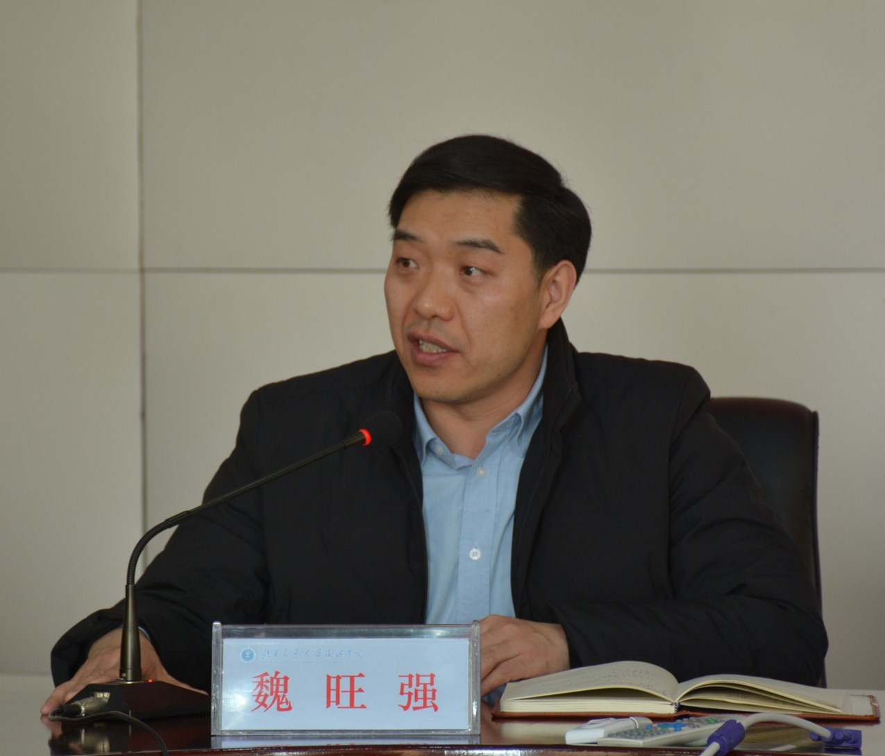 3月2日下午15点,我校2018新学期工作会议在行政楼B512会议室成功举行。我校党委书记、副院长魏旺强,党委副书记、副院长张长铎,副书记魏炜,职能处室和各系相关负责人、各系团委书记出席会议。此次会议由院长助理、学院办公室主任任福义主持。