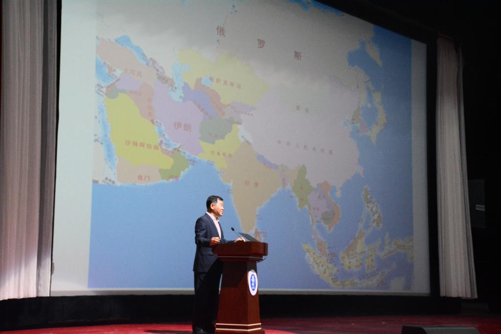 王化深院长从当下中国周边形势入手,从政治、经济、军事、文化四个方面对中国周边的国际环境、国家安全形势进行了分析。进而提出在世界多极化、文化多样化、信息多元化的复杂形势下, “一带一路”倡议应运而生。他提到, “一带一路”是一个长期战略,是一个理念和倡议,同时也是一个政治互信、经济融合、文化包容的中国方案。最后,他鞭策海滨学子要牢记自己的责任与使命,把自身的成长目标和祖国的建设需要结合起来,为中国梦的实现添砖加瓦。
